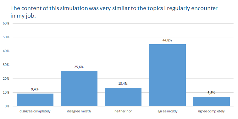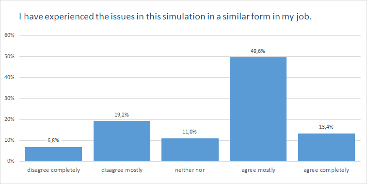The majority of the participants indicate that they have experienced situations similar to those in the simulation in their professional work.