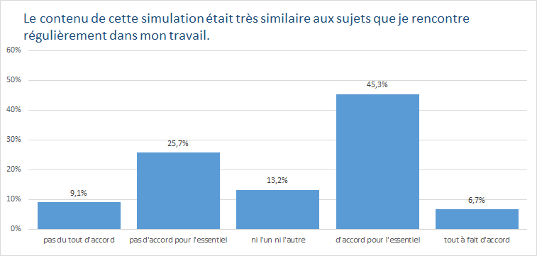 La majorité des participants déclarent avoir déjà vécu des situations similaires à celles de la simulation dans le cadre de leur activité professionnelle.